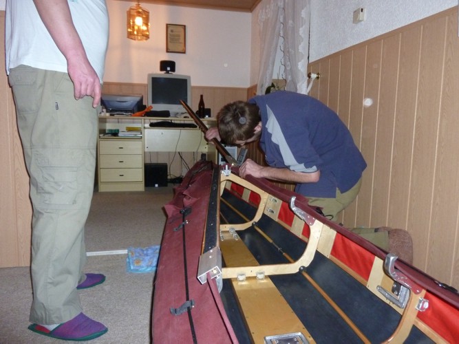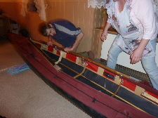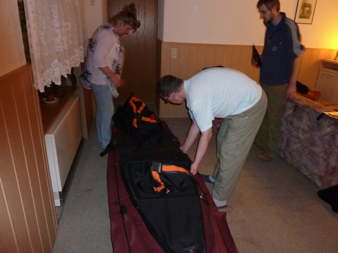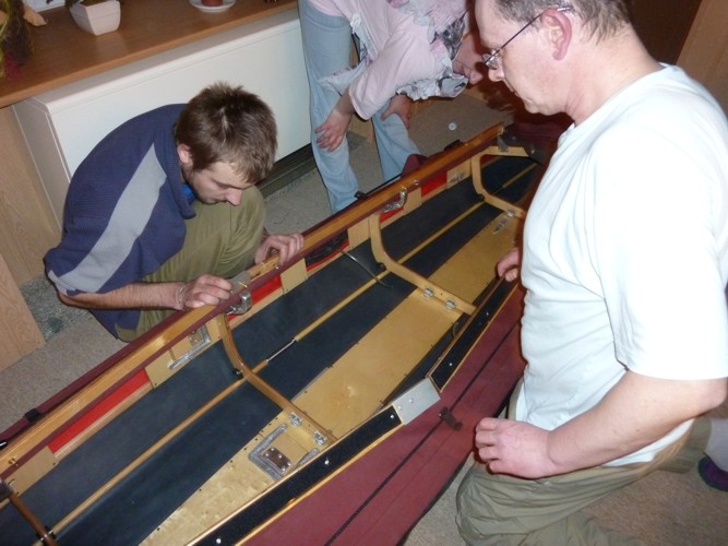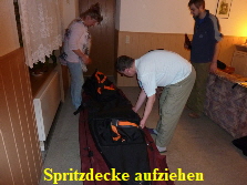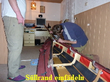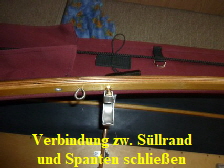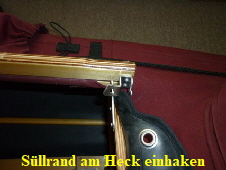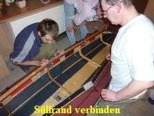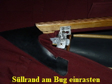 müssen bevor man diese auf die Bootshülle schiebt. Wir schoben erst den vorderen dann den hinteren Teil des Süllrandes auf und versuchten dann die Teile miteinander zu verbinden. Geht