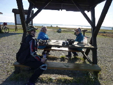 immer noch aus einer günstigen Richtung. Die nächste Pause machten wir an der Tourismusinformation. Dort stürmte es recht heftig, so dass wir kaum eine Zigarette angezündet bekamen. Auf
