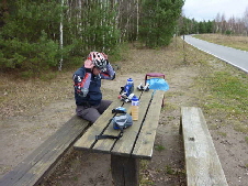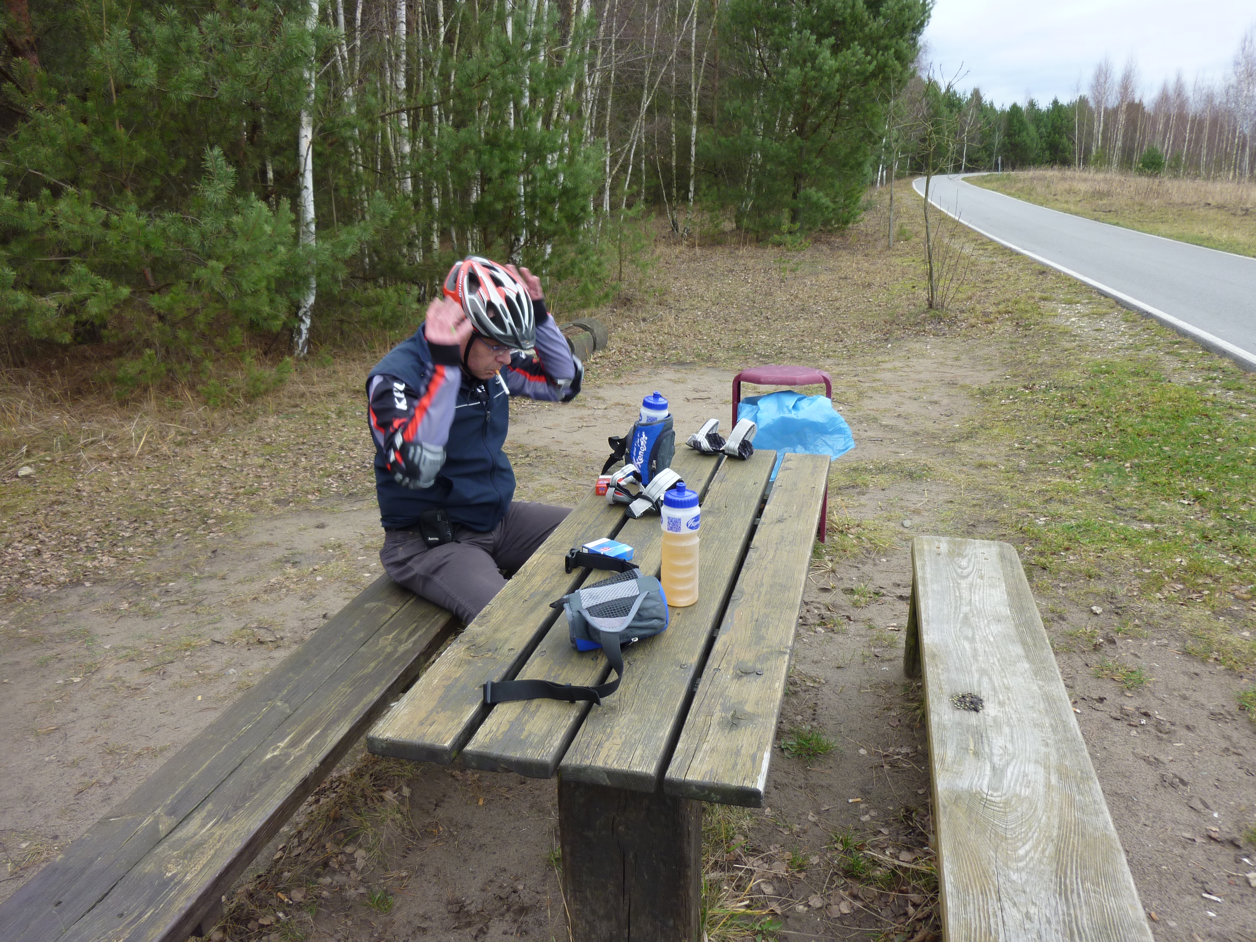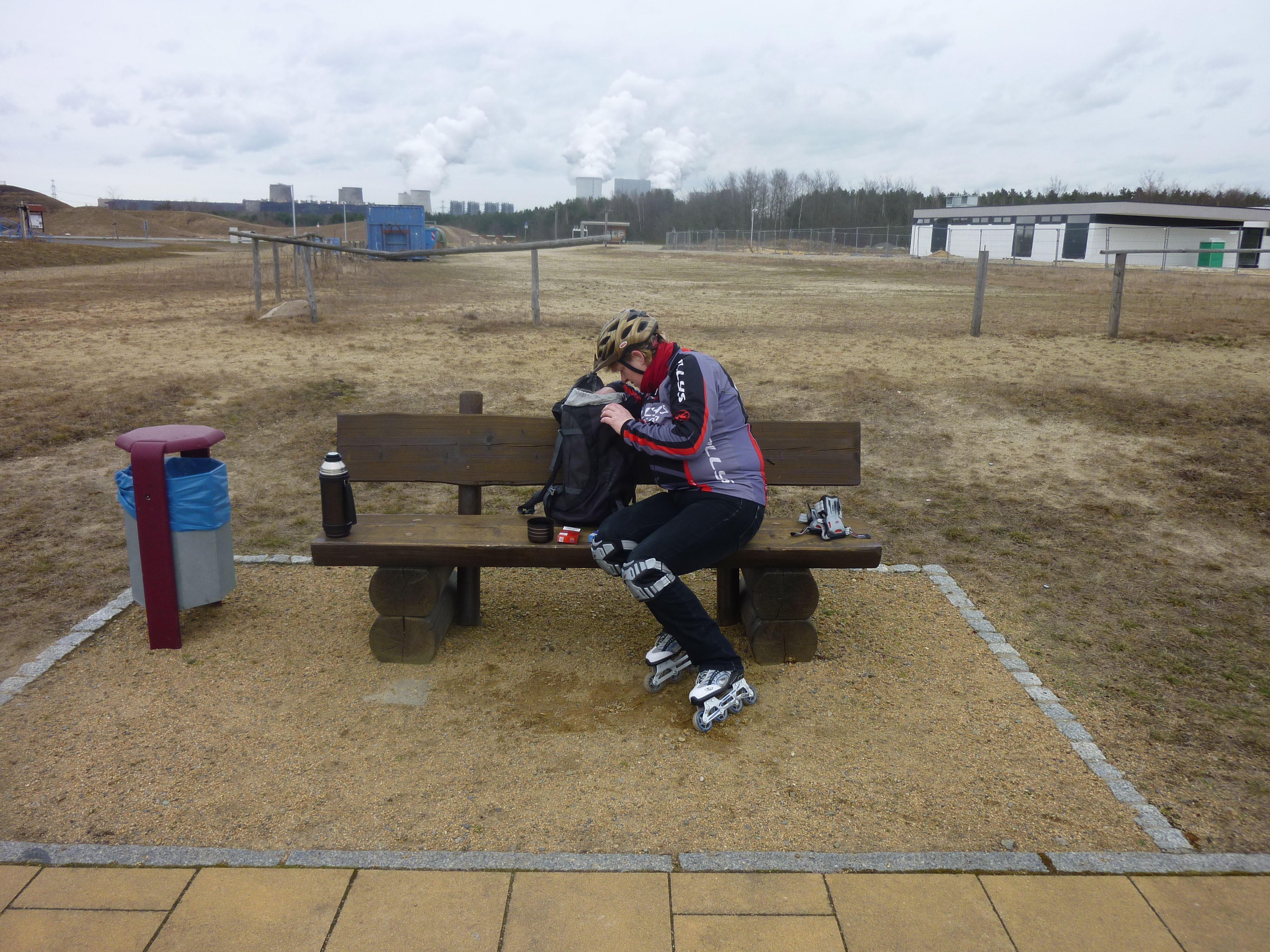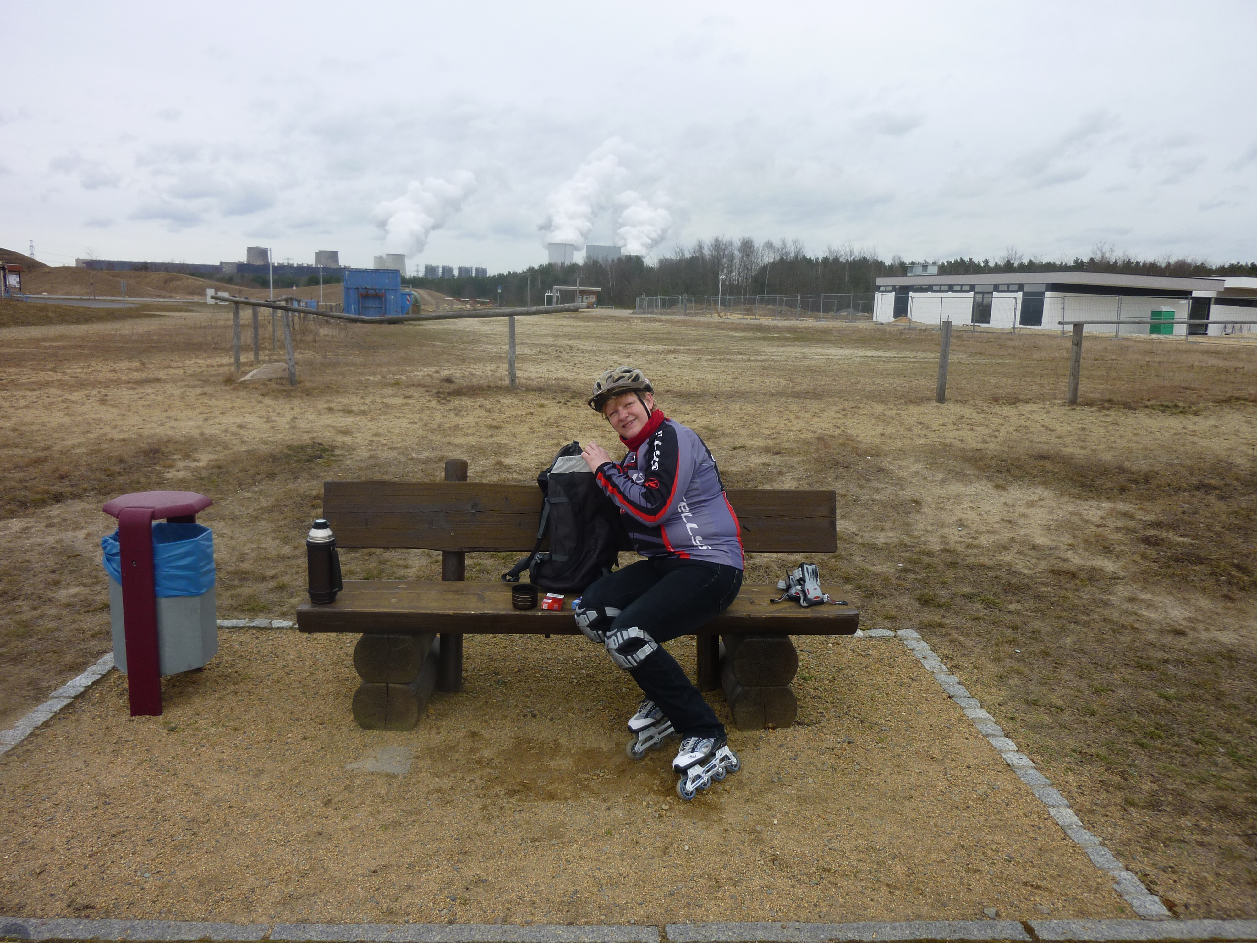 Ski-Unterwäsche angezogen. Dann rollten wir los. Beim Aussichtspunkt Uhyst machten wir die erste Pause. Bis dahin hatten wir auch die ganze Zeit den Wind im Rücken.