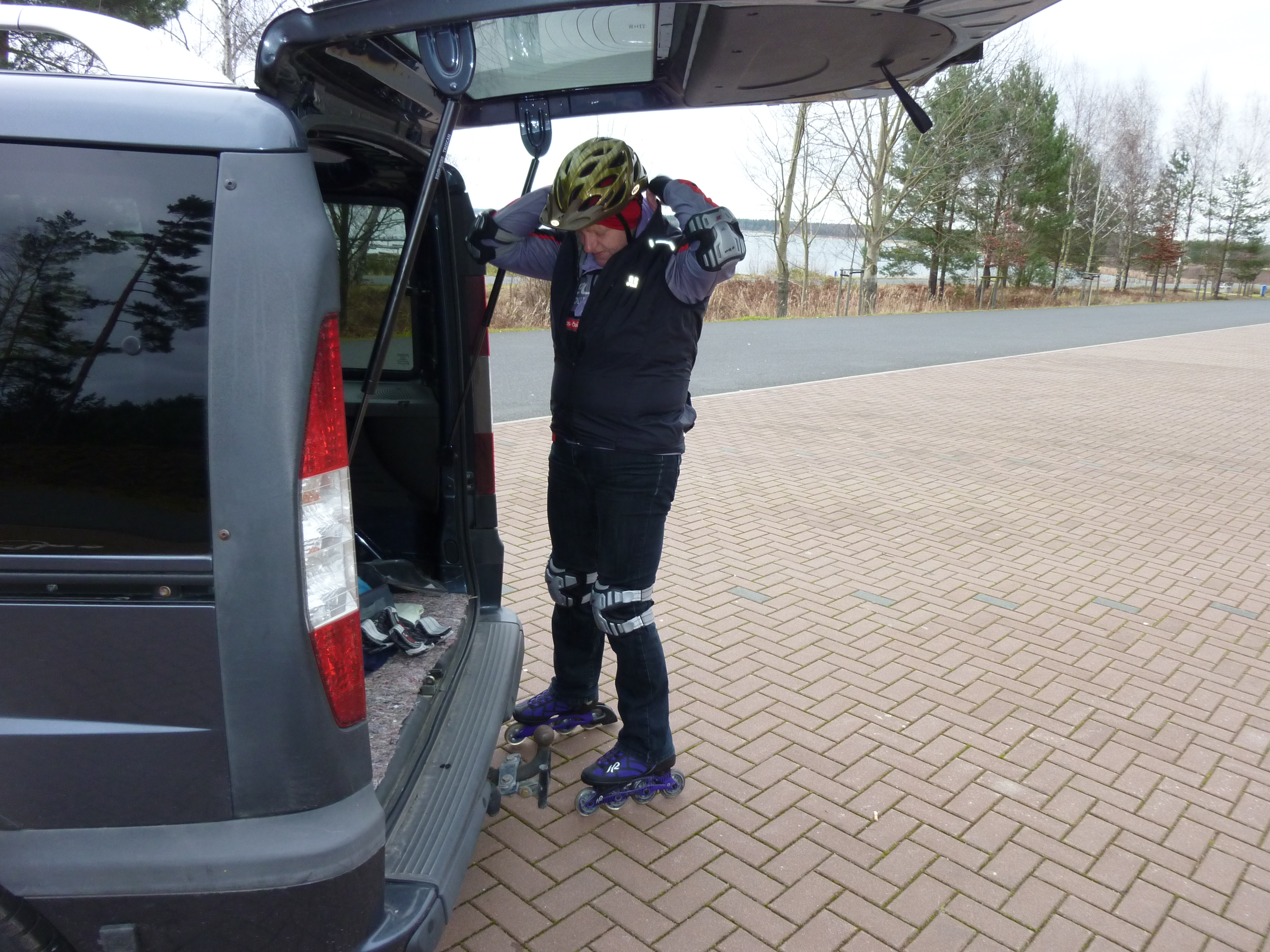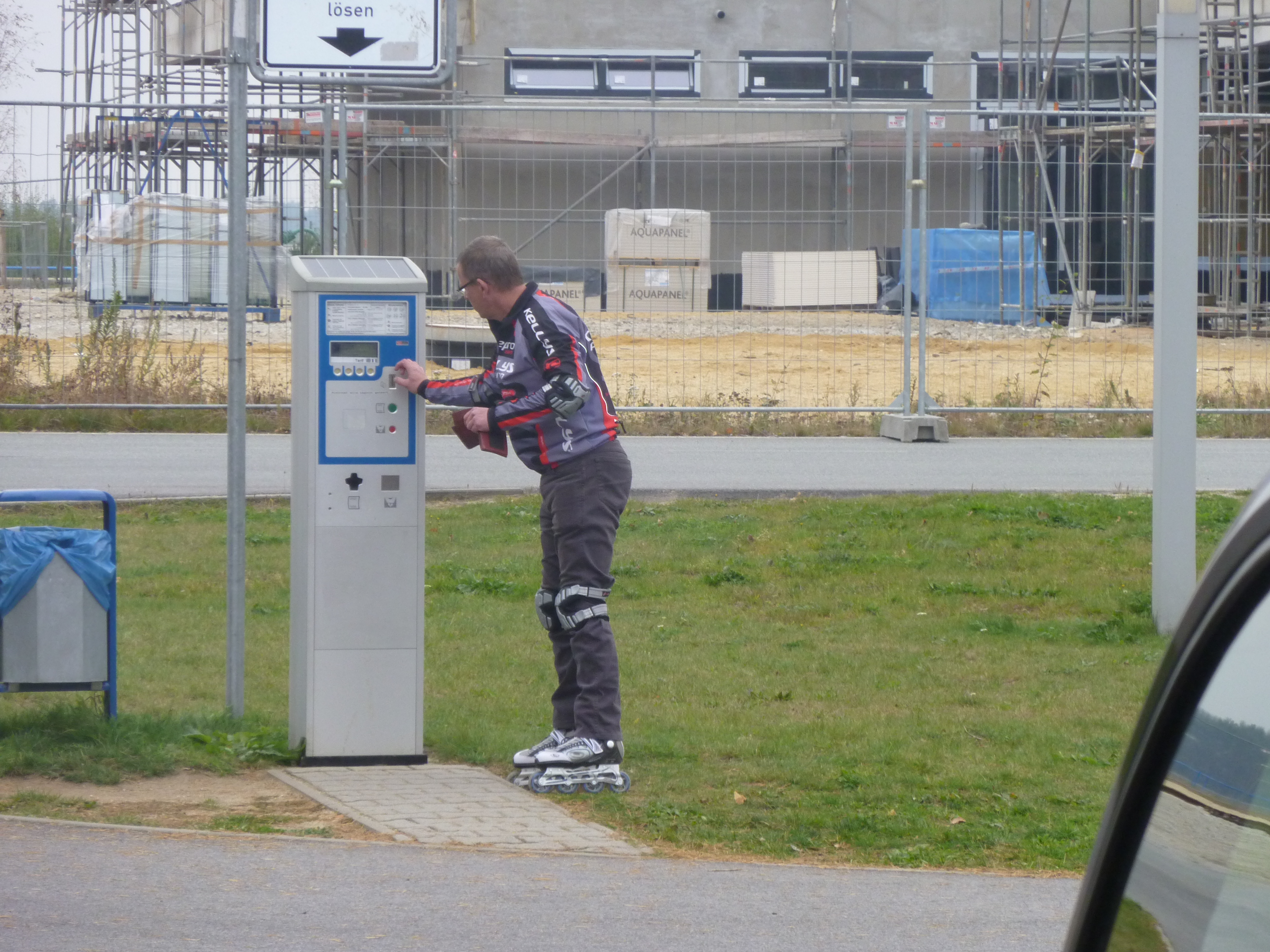 Februar war, ist das Wetter zum Fahren ganz gut gewesen. Wir stellten das Auto auf dem Parkplatz ab, brauchten auch keine Gebühren bezahlen. Inliner an die Füße und los, gegen den