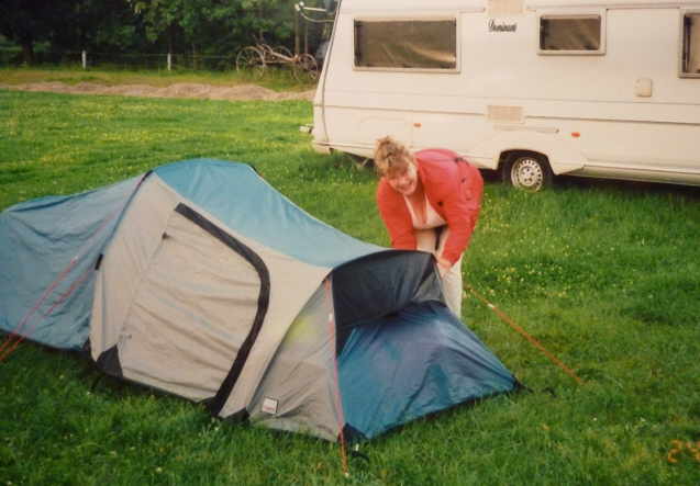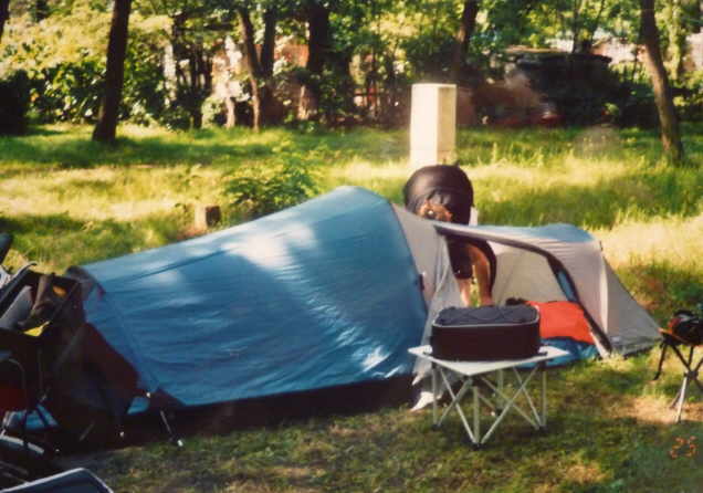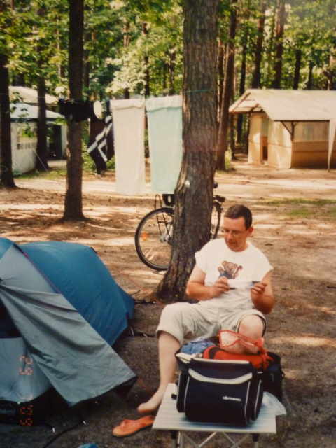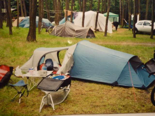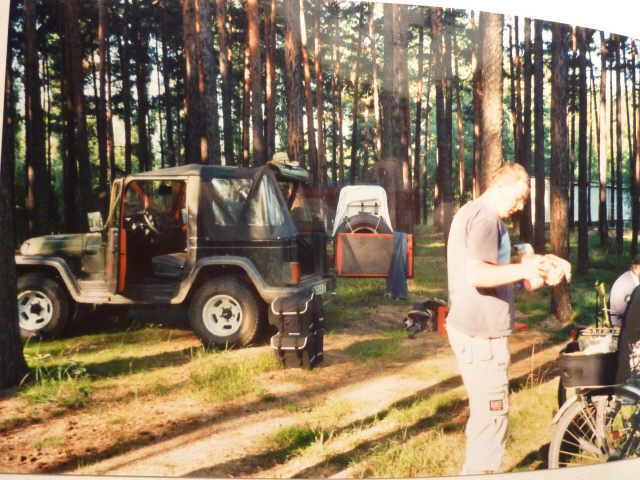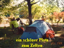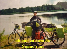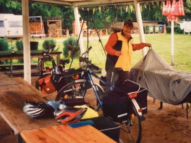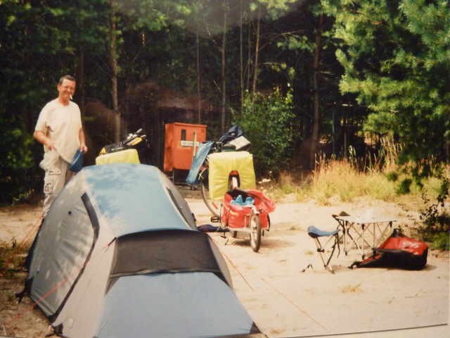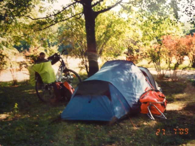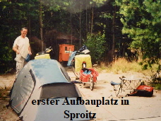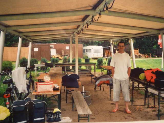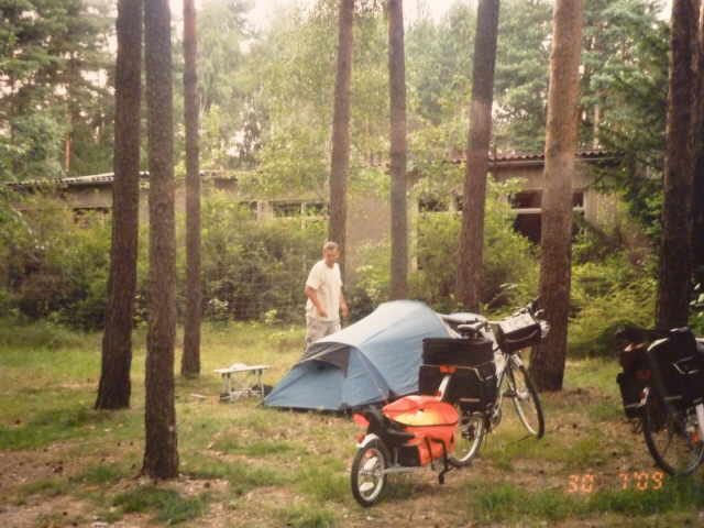 Rundtour mit den Rädern, um uns einen Überblick zu verschaffen. Nach dem Abendbrot am Zelt, machten wir uns zum Schlafen fertig. Die Waschgelegenheit war in einem alten Bauwagen
