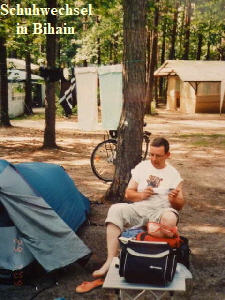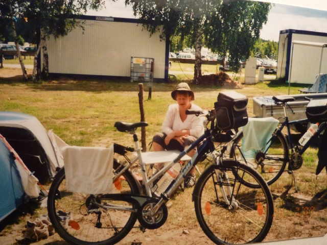 An der Sparkasse stellten wir fest, dass an meinem Fahrrad das Hinterrad eine zauberhafte Acht aufwies. Gut dass es nicht mehr weit zum Zeltplatz war. Die ganze Tour war dann so ca. 60 km