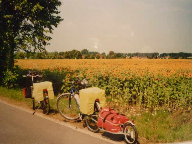 mit dem Rad mit uns fahren, hatte aber einen Plattfuß und wir keine Teile zum Flicken. So musste sie mit Mathias, mit dem Auto mitfahren. Es war an diesem Tag unglaublich heiß. Ich bin