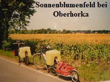 rechtzeitig gemerkt haben. Bei Oberhorka machten wir eine Pause und freuten uns an einem riesigen Sonnenblumenfeld. Am Zeltplatz Sproitz ging es zur Anmeldung. Wir konnten uns den