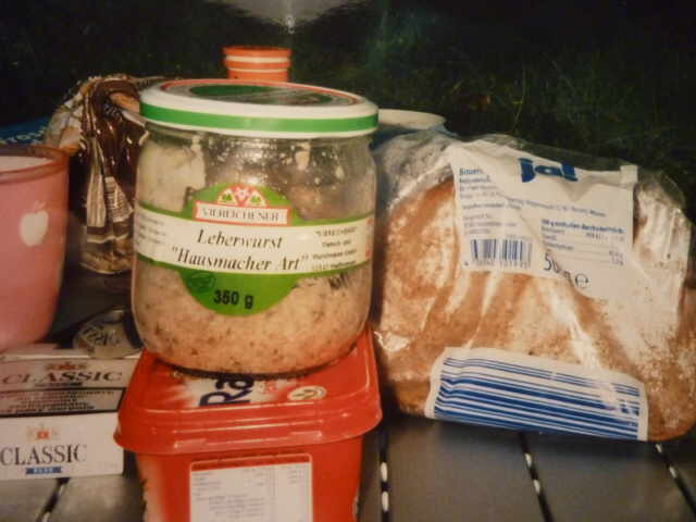 auch ein Glas Leberwurst haben wir uns geleistet. Nachdem wir zurückgekehrt waren, trauten wir unseren Augen kaum. Da hatten sich welche mit ihrem Wohnwagen so dämlich hingestellt, dass