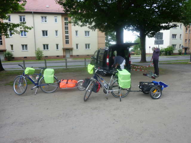 gefahren. Ankunft in Forst so gegen 06.30 Uhr. Dort das Auto entladen, Fahrrad beladen, Anhänger anbauen und Sachen anziehen. Dann ging es gegen 07.00 Uhr los. Diese Etappe sollte bis
