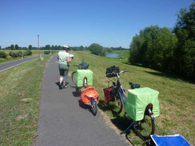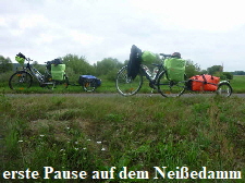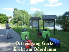 auf den Oderdamm und die Fahrt ging wieder schneller voran. Plötzlich war der Damm aber zu Ende und es stand ein Radfahrerpaar und studierte die Karte. Es hieß hier den Damm zu verlassen