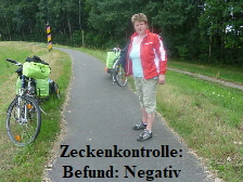Hinter Frankfurt/Oder wählten wir die im Bikeline-Führer angegebene Alternativroute. Diese führte teilweise auf Waldwegen mit zugewachsenen Passagen. Irgendwann trafen wir