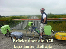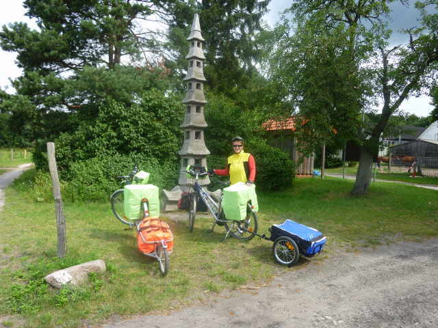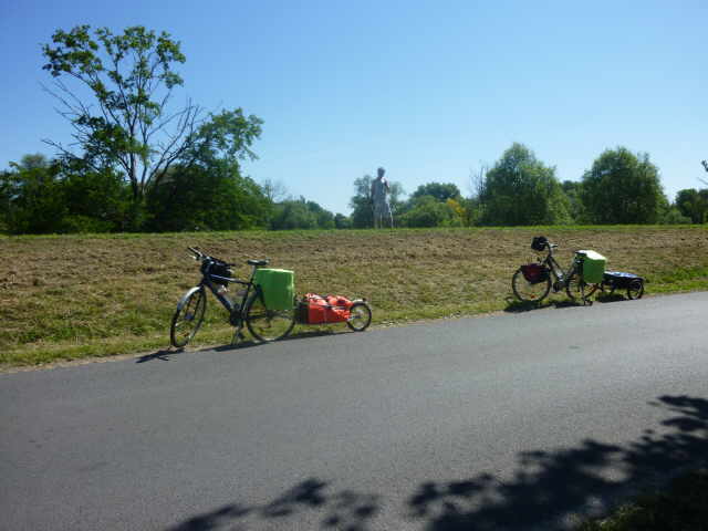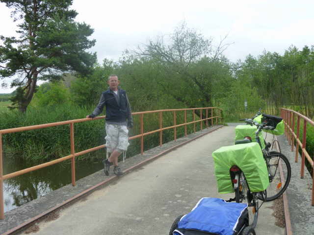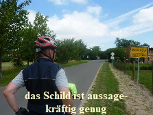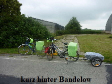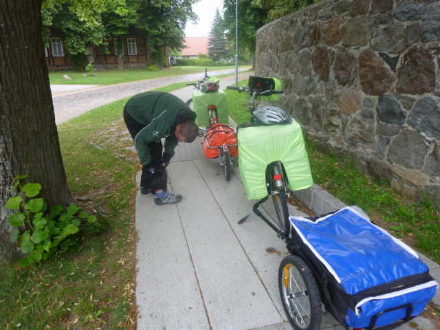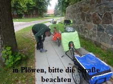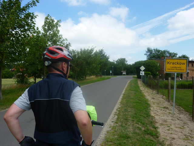 Bei Stützkow mussten wir, auf Grund von Deichbauarbeiten, den Radweg verlassen. Aus Stützkow führt die Straße mit 10% Steigung heraus. War mit dem Gepäck und Anhänger