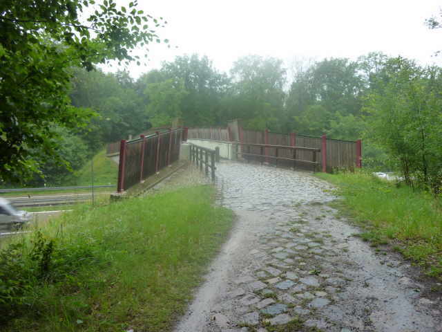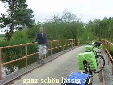 das Hinweiszeichen zum Abbiegen Richtung Brücke, nach dem letzten Hochwasser, nicht erneuert worden. Wir drehten um und fuhren ca. 2 km zurück und fanden dann auch den Steg über die