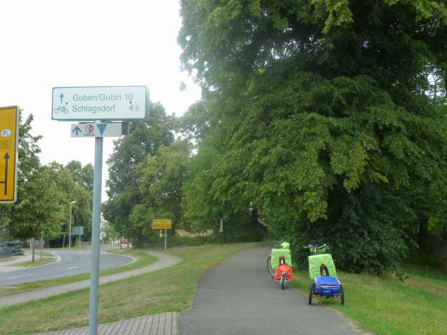 Wir verließen diesen Ort, der so schlimme Erinnerungen weckte, so schnell wie möglich. Wir passieren Guben und am Ende der Stadt entfernen wir uns erstmal von der Neiße.