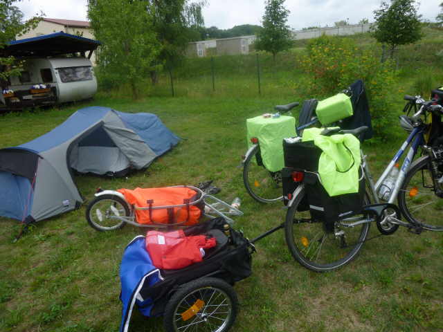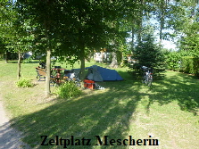 (welche Geldverschwendung). Den Zeltplatz in Mescherin finden wir schnell, da er unmittelbar am Radweg liegt. Wir sind, als wir ankommen, die Einzigen die hier ihr Zelt aufbauen. Sonst