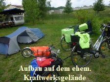 Der Biwakplatz befindet sich auf dem Gelände des ehemaligen Kraftwerks Brieskow-Finkenheerd. Es war schwierig die Heringe in den Boden zu bekommen (Bauschutt mit 5 cm