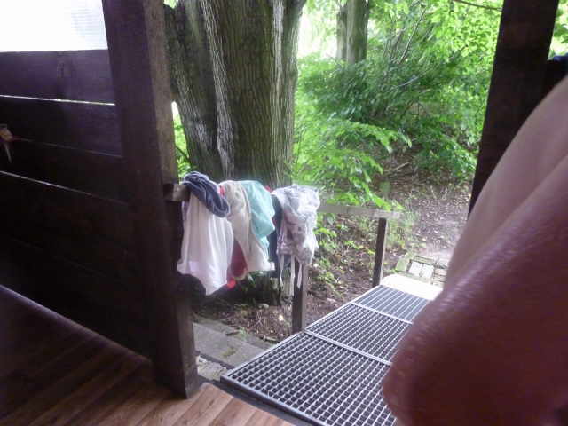 Der Platz war wunderschön und ruhig. Im Sommer dient er als Kinderferienlager der AWO Torgelow. Nach dem Zeltaufbau nutzten wir die vorhandenen Wäscheleinen um unsere