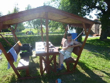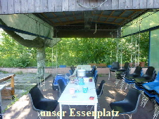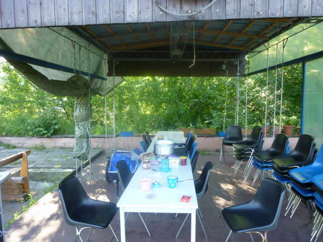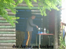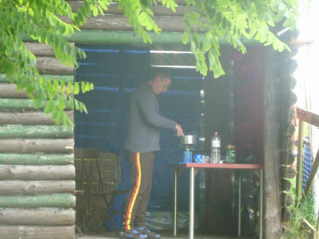Sachen zum Trocknen aufzuhängen. Dann ging es ans Abendbrot vorbereiten. Schön war, dass es einen Unterstand gab, wo wir vor Wind und Wetter geschützt, das Essen kochen konnten. Wir waren