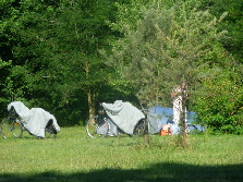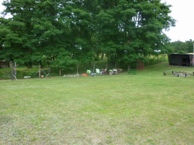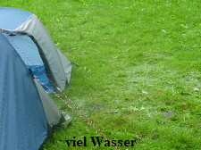 war rausgekommen. Wir meldeten uns an und bauten das Zelt auf. Man merkte, dass es hier stärker geregnet hatte, denn die Wiese war recht nass. Es war noch eine polnische Gruppe mit