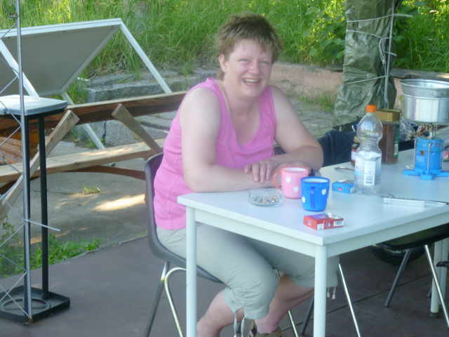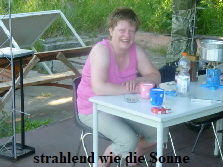 freundlich. Wir bauen das Zelt auf. Danach gehen wir in die Nahe gelegene Gaststätte und essen ordentlich zu Abend. Nach der Rückkehr setzten wir uns vor das Zelt, spielten ein bisschen