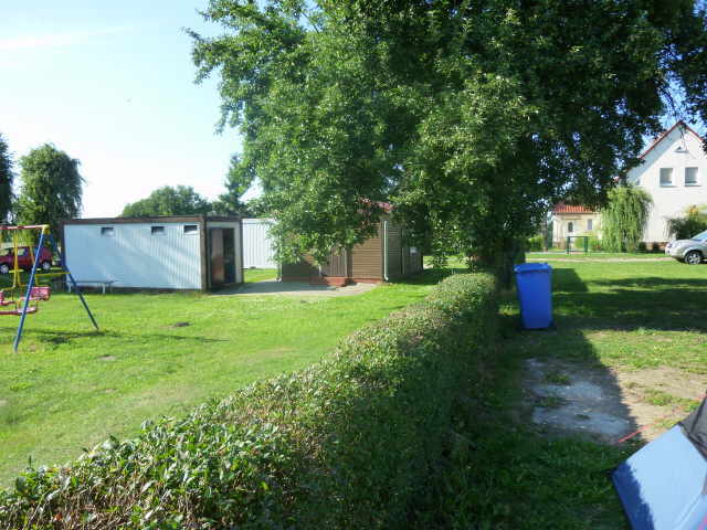 Mutterboden abgedeckt). Nach dem Zeltaufbau sahen wir uns auf dem Gelände um. Es war ein wunderschöner Platz. Die Toiletten und Waschgelegenheit wird mit Oderwasser betrieben, dazu muss