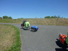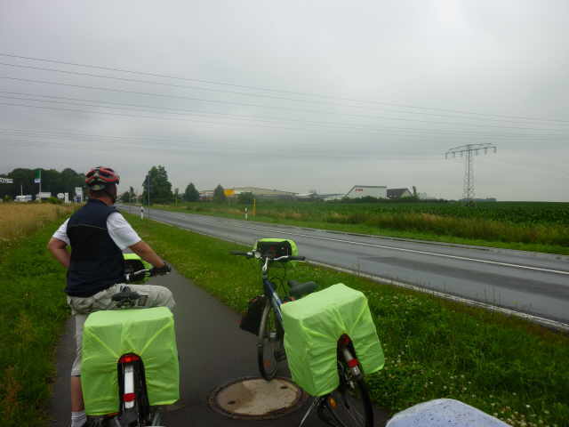 frühstücken. Dann noch Besteck abwaschen und den Rest verpacken. Gegen 08:15 Uhr sitzen wir auf den Rädern und los gehts. Das Wetter war recht durchwachsen. Wolken zogen über uns hin,