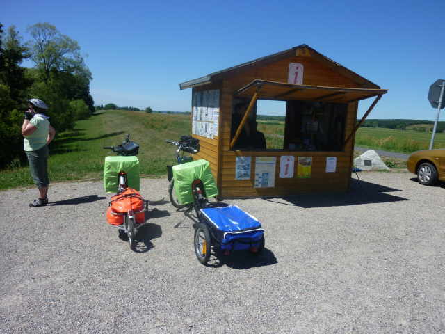 Wir fahren weiter und wollen uns spontan entscheiden. Als wir so ruhig vor uns hin radeln, sehen wir eine Art Kiosk am Radweg stehen. Als wir näher kommen entpuppt sich der