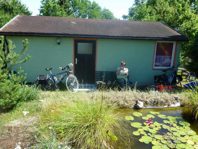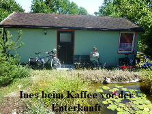 eines Bungalows in Hohenwutzen aus. Dort stand, dass es auch möglich sei bis zu drei Zelte aufzustellen. Ines nahm gleich das Telefon zur Hand. Ergebnis war: Wir fahren bis Hohenwutzen
