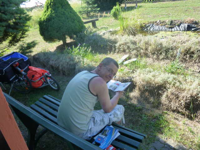 Karten und tranken das obligatorische Bier. Währenddessen kamen dann noch drei Radlerpärchen und bauten ihre Zelte auf. Wir planten die nächste Etappe, gingen uns waschen und dann zu Bett.