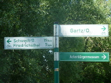 Nähe? Als wir vom Radweg Richtung Angermünde abgebogen sind, sahen wir ein kleines Hinweisschild auf einen Campingplatz. Wir wollten diesen Campinplatz aufsuchen. Zurück, vorbei am