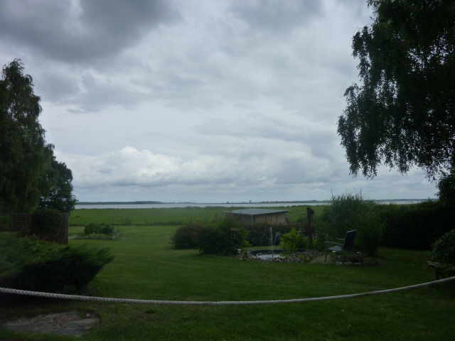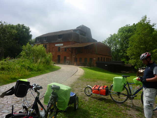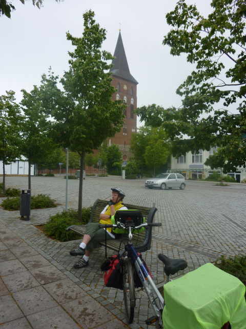 Während es weiter goß, genossen wir den Kaffee und redeten mit einem anderen Radler, der grade auf dem Weg von Kopenhagen nach Berlin war. Als es etwas weniger regnete,