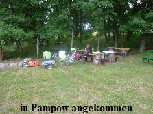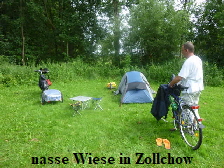 anziehen mussten. Den weiteren Weg um den “Kuzowsee” über Blankensee bis Pampow hat es ständig vor sich hin geregnet. In Pampow angekommen suchten wir den Zeltplatz. Das