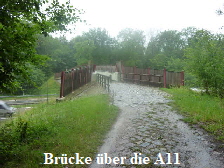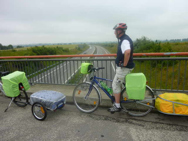 Bevor wir die A11 überquerten, warteten wir ca. eine halbe Stunde bis der Regen etwas weniger wurde. Auf der anderen Seite hatten ein paar andere Radler ihr Zelt