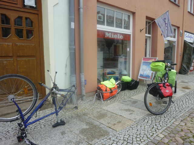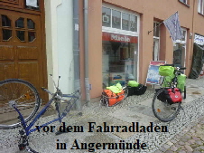 fragen, ob man uns dort ein Fahrradgeschäft in Angermünde nennen kann. Man konnte uns, nach Recherche im Internet, eine Adresse nennen. Nach dem Essen fuhren wir nach Angermünde und