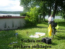 einfach und schnell erledigt. Der Regen hatte auch aufgehört, so dass wir nach dem Zeltaufbau unsere Sachen trocknen konnten.
