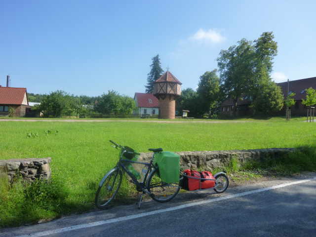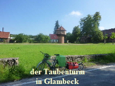 unter der A11 hindurch, an der Fahrradkirche, sehr unscheinbar, fast zu übersehen, vorbei und noch den Taubenturm fotografiert. Wir wollten uns nicht lange irgendwo aufhalten um die