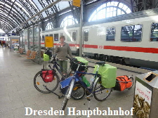 Dann kam der Zug nach Dresden. Wir begannen die Fahrräder in den Zug zu schaffen. Als ich zum Schluß meinen Anhänger reingeben wollte, ging auf einmal die Schiebetür zu und klemmte den