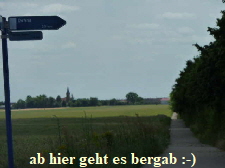 voran. In Langenlipsdorf verlieren wir erst Mal die Orientierung. Ein Pärchen mit Fahrrädern hilft uns den richtigen Weg wieder zu finden. Kurz danach, nachdem wir eine Steigung