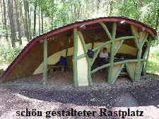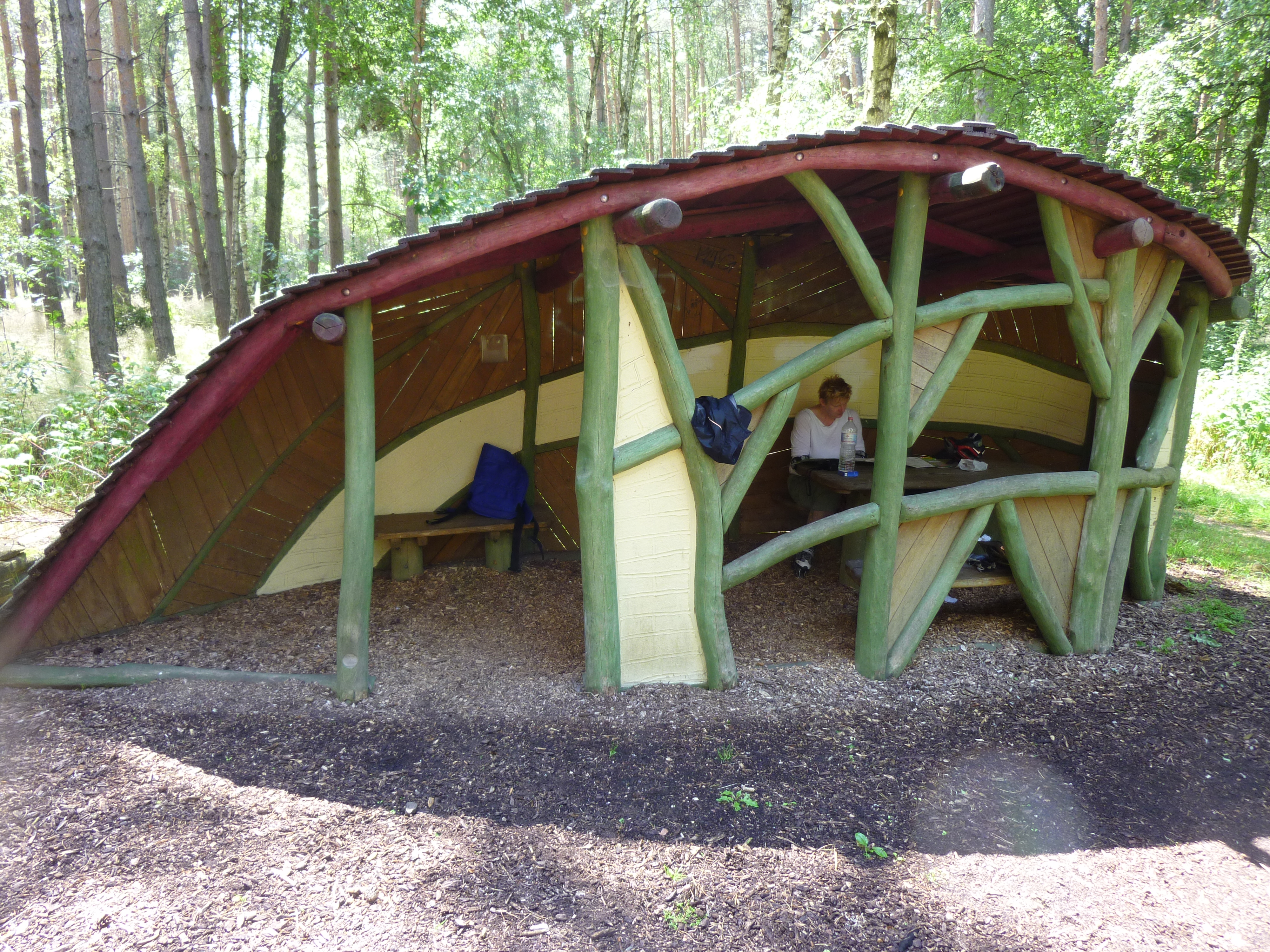 nach Hohengörsdorf zu gelangen. Im Wald finden wir endlich einen Unterstand, der uns Schutz vor dem Regen bietet. Wir sind inzwischen bis auf die Knochen durchnäßt. Dort machen wir