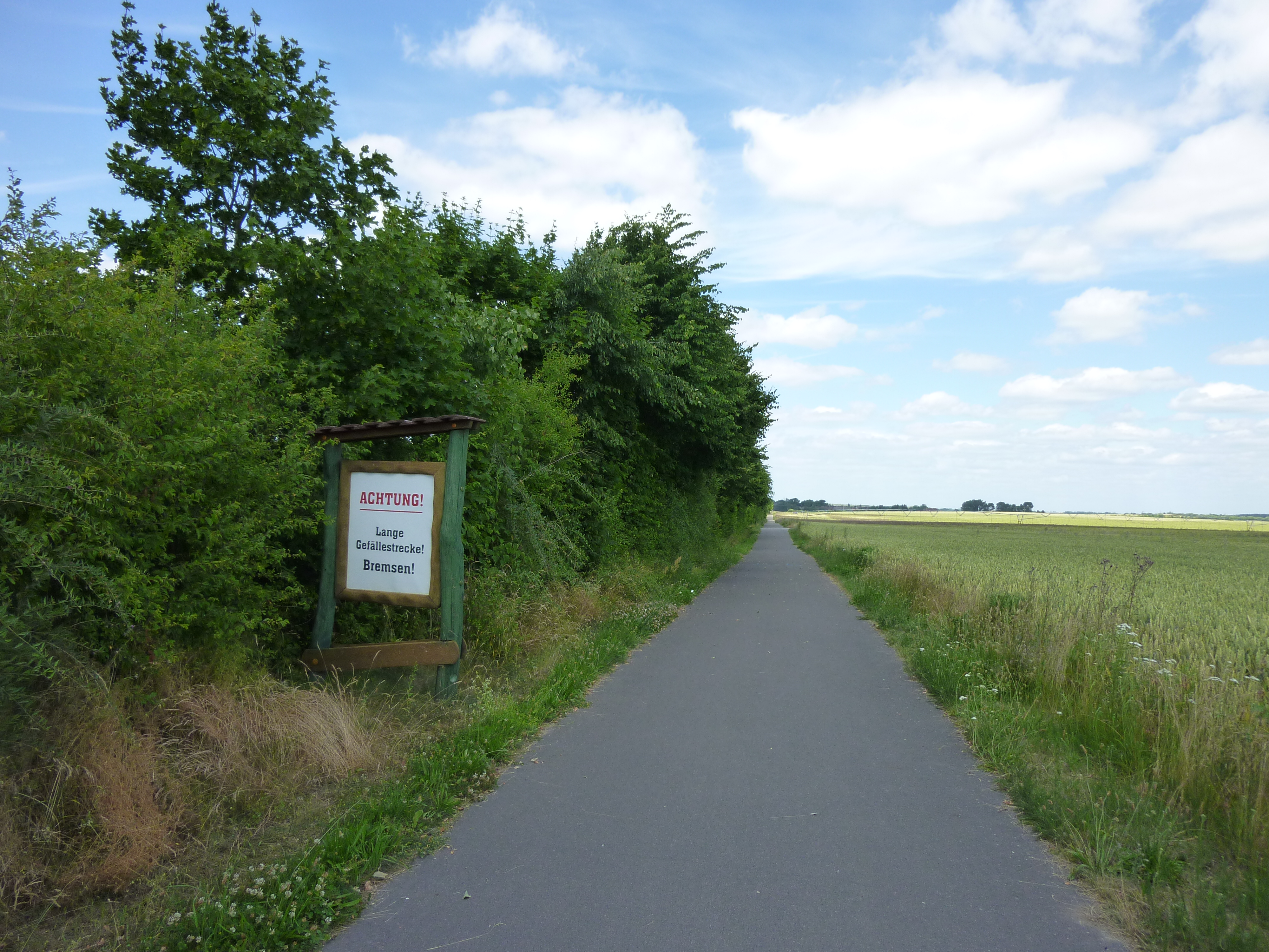 immer die Schuhe zubinden. Ich komme mir vor wie behindert). Dann geht es los. Die ersten Kilometer sind mit der Tour des ersten Tages identisch. Am Abzweig, Boch links, Langenlipsdorf