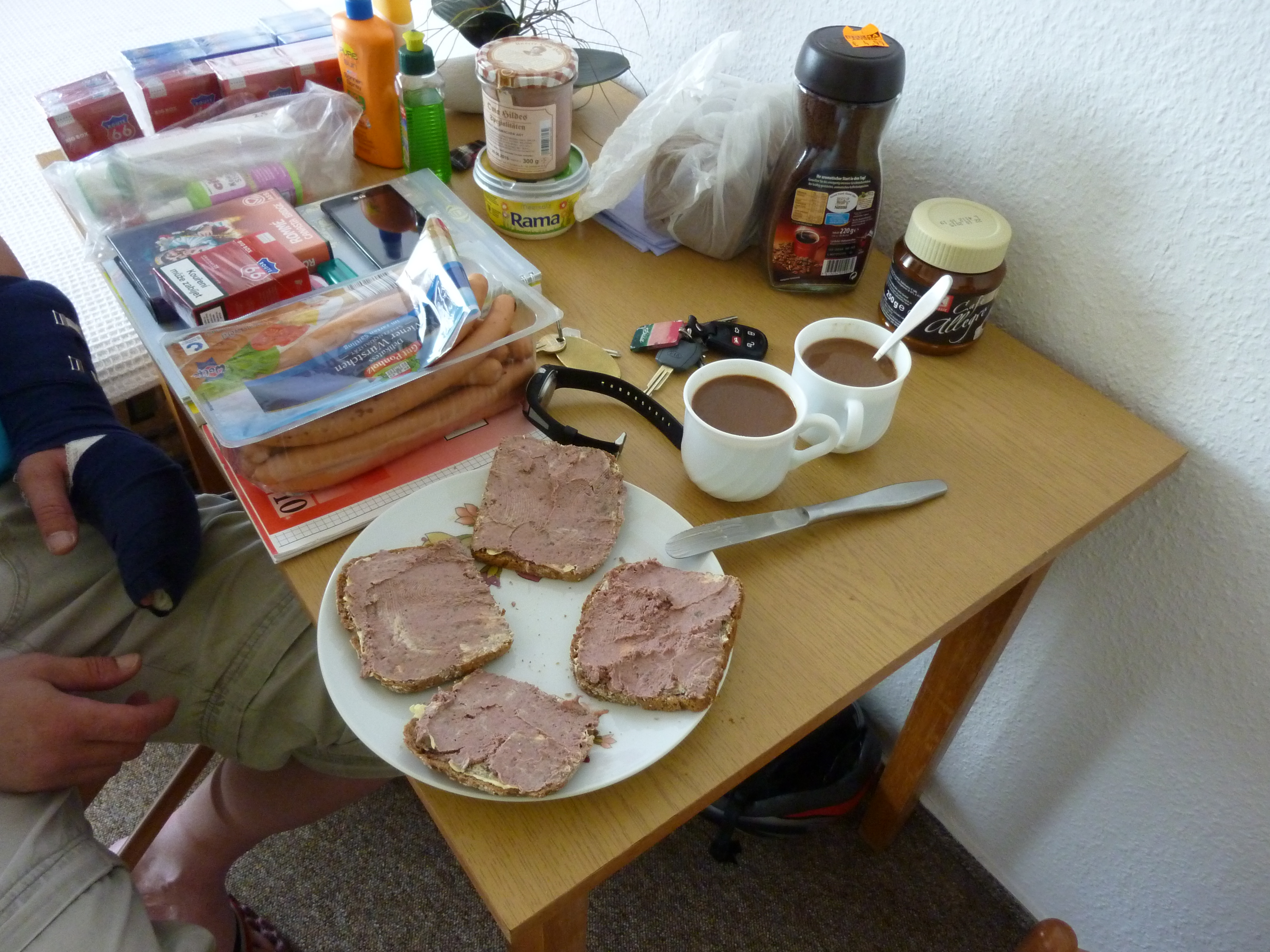 klingeln. Als wir in der Pension ankommen, machen wir uns Kaffee und essen dazu Leberwurstbrot und Wiener