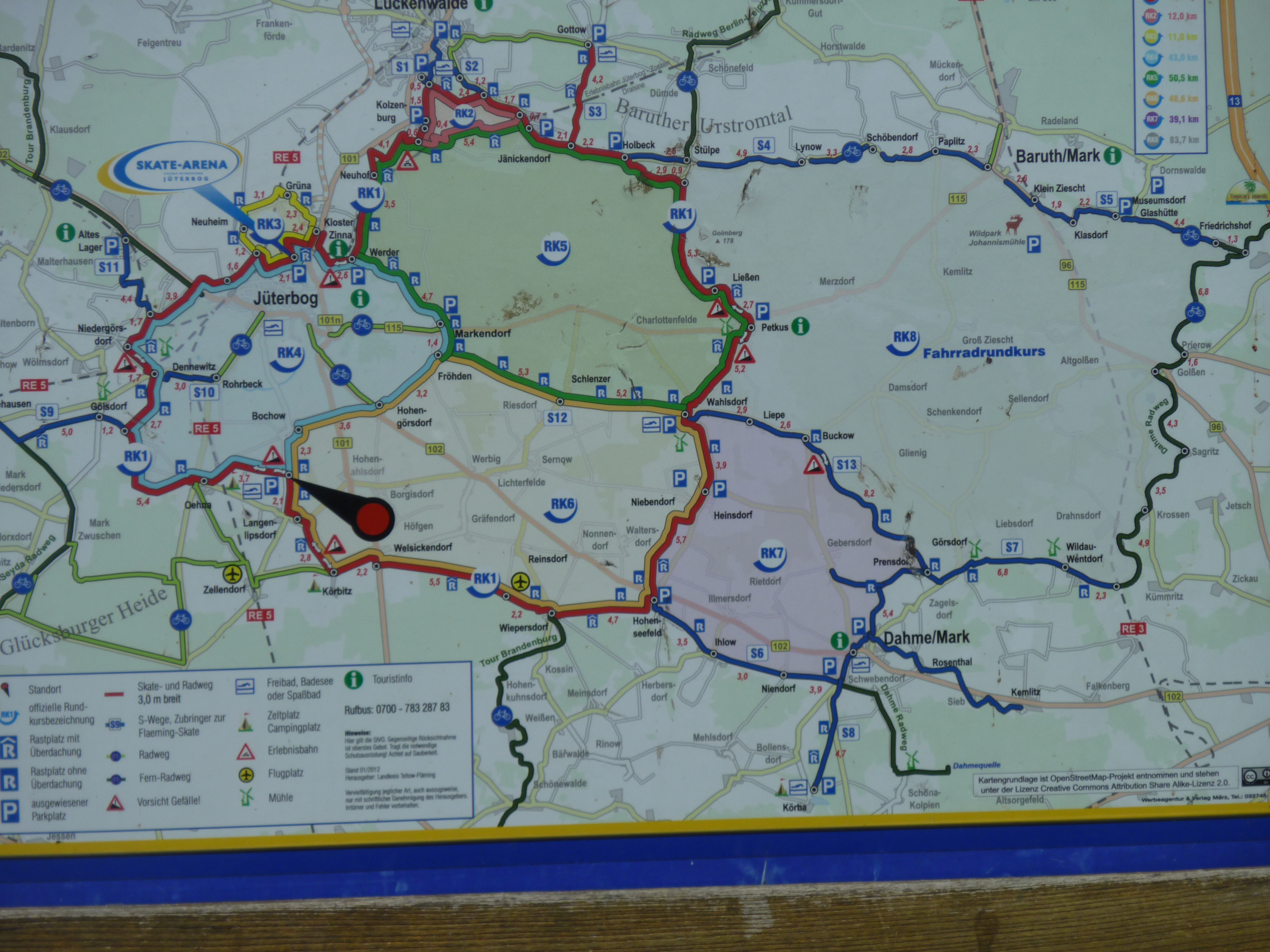 heute durch. Wir wollen die Tour entsprechend der Karte vom “Fläming-Skate” fahren. Allerdings mit der Einschränkung, nach dem ersten Drittel die Rundtour zu verlassen und auf