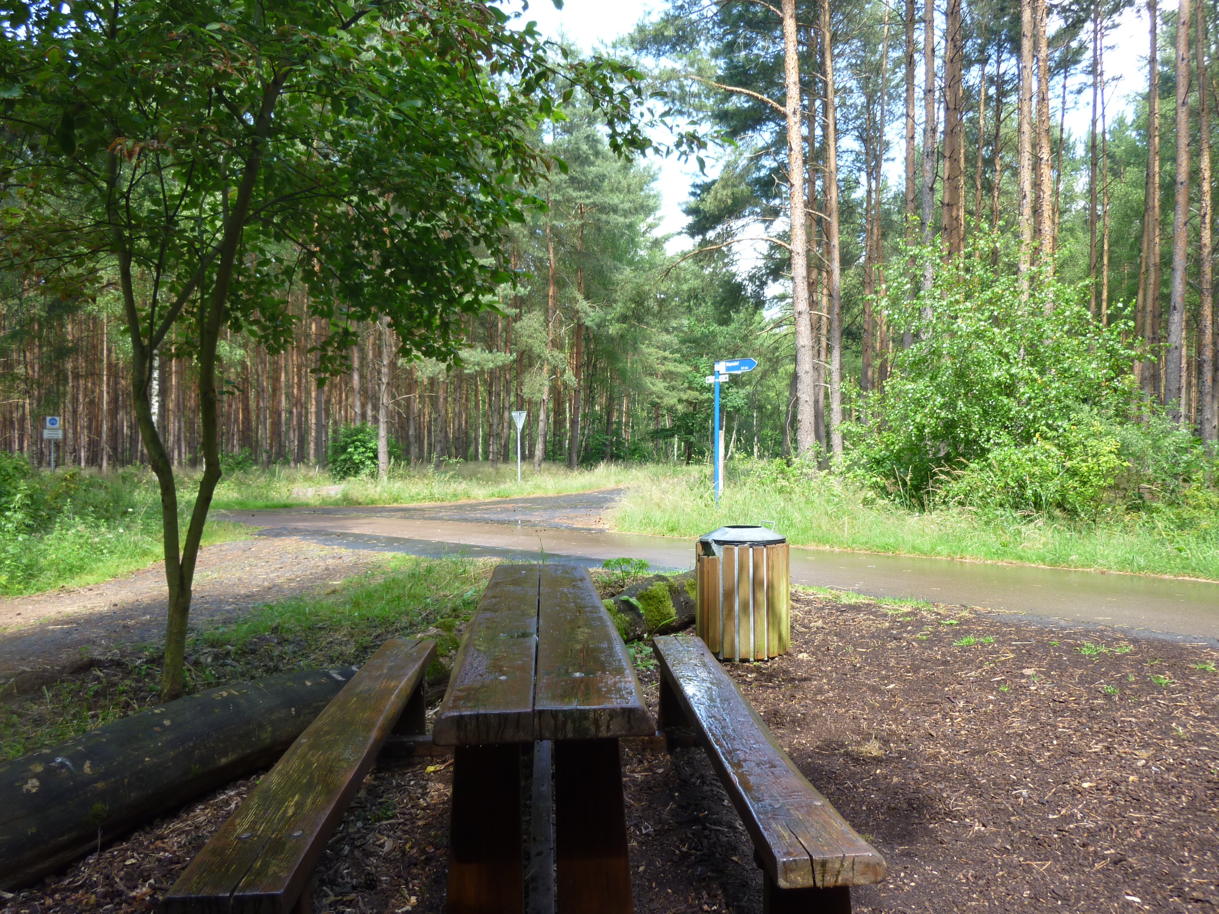 lassen uns nicht beirren und fahren weiter. Es bleibt auch nichts anderes übrig, da es keine Möglichkeit zum Unterstellen gibt. Von Welsickendorf aus geht es dann eine Zeit durch den Wald