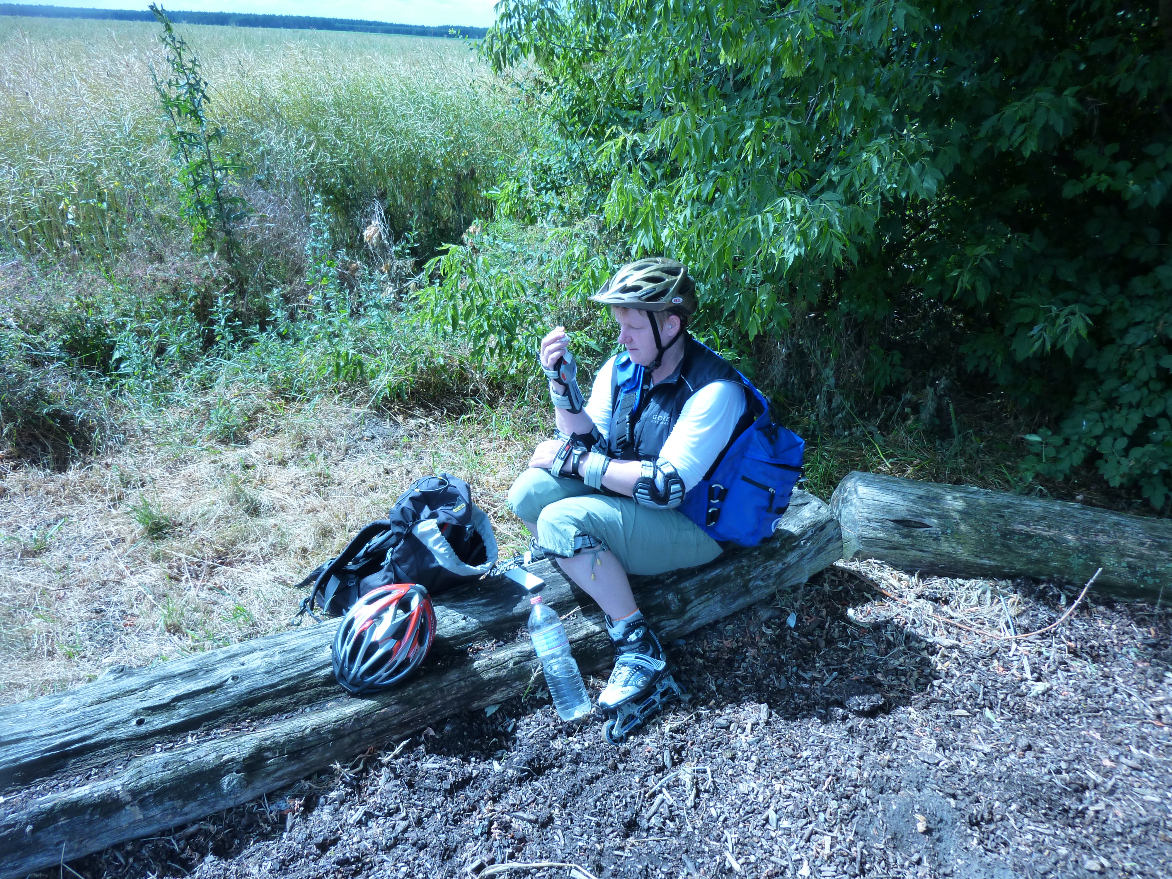dass sich bei ihren Inlinern die Rollen gar nicht mehr richtig drehen. Bestimmt eine Folge der langen Tagesstrecke mit dem Regen. Na ja, ich gebe zu, ich habe die Inliner bei der