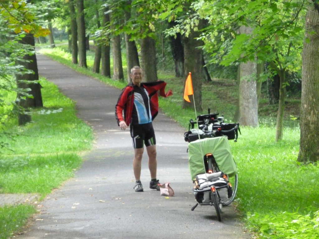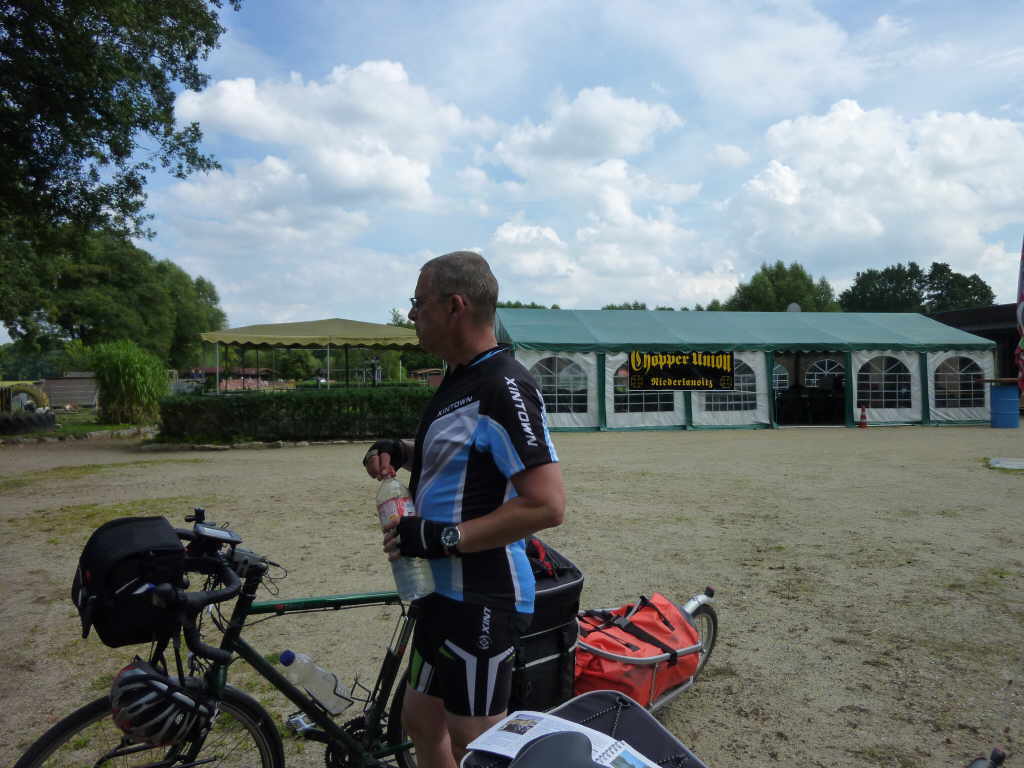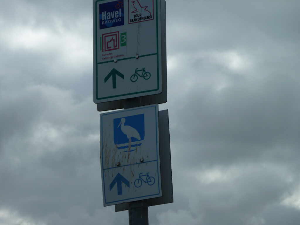 kurzen T-Shirts in Richtung Rathenow. Der Himmel ist richtig bedeckt und es sieht zeitweise so aus als ob es regnen wollte. Aber es bleibt trocken. Nach ca. 10 km machen wir eine Pause