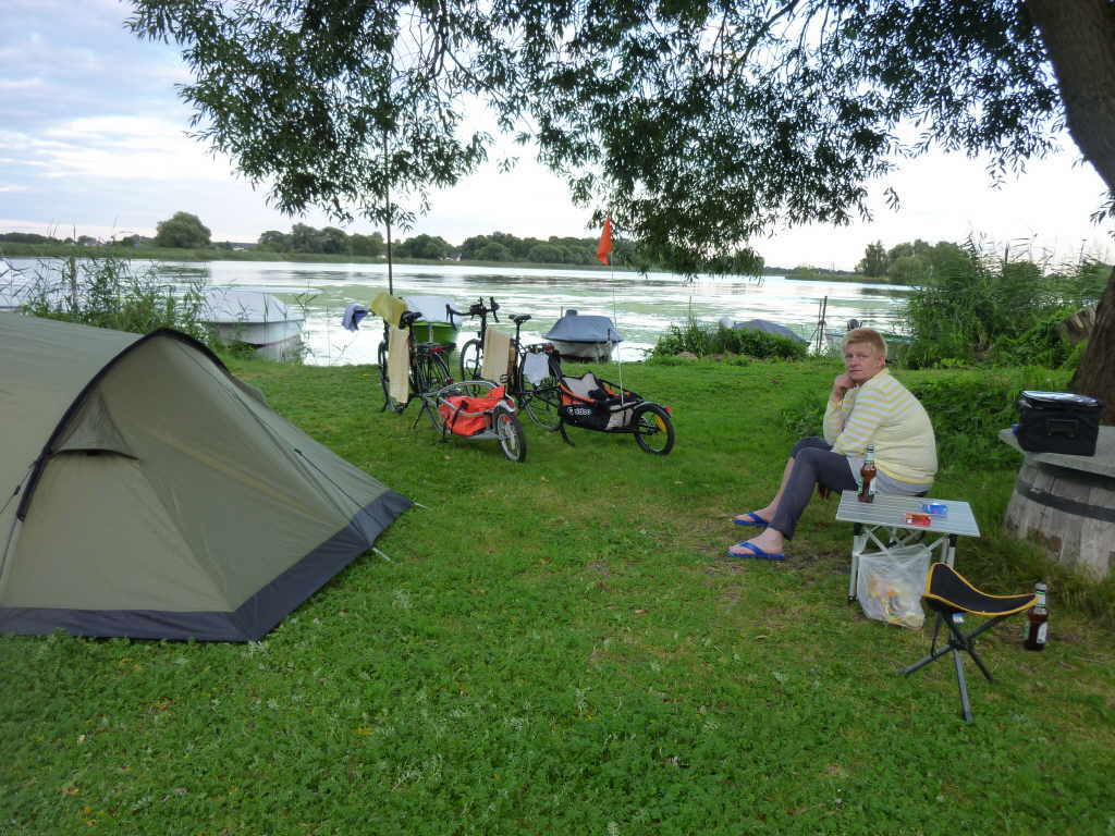 Aussicht und die Ruhe am Ufer der Havel. Zur Zeit sind nur wir und ein junges Pärchen mit Kindern auf dem Platz. Die paar Dauercamper hört man gar nicht. Neben uns steht noch ein kleines