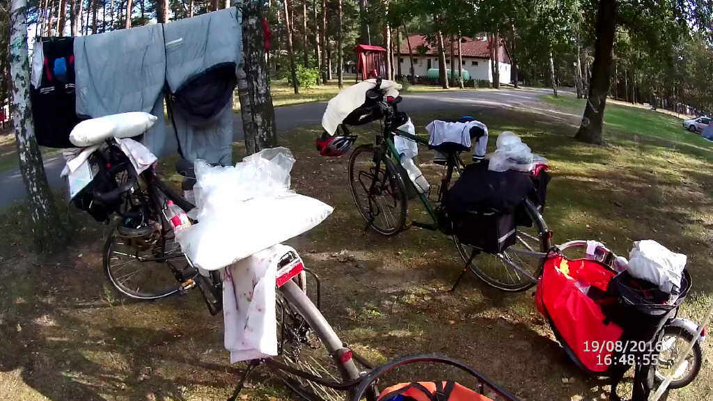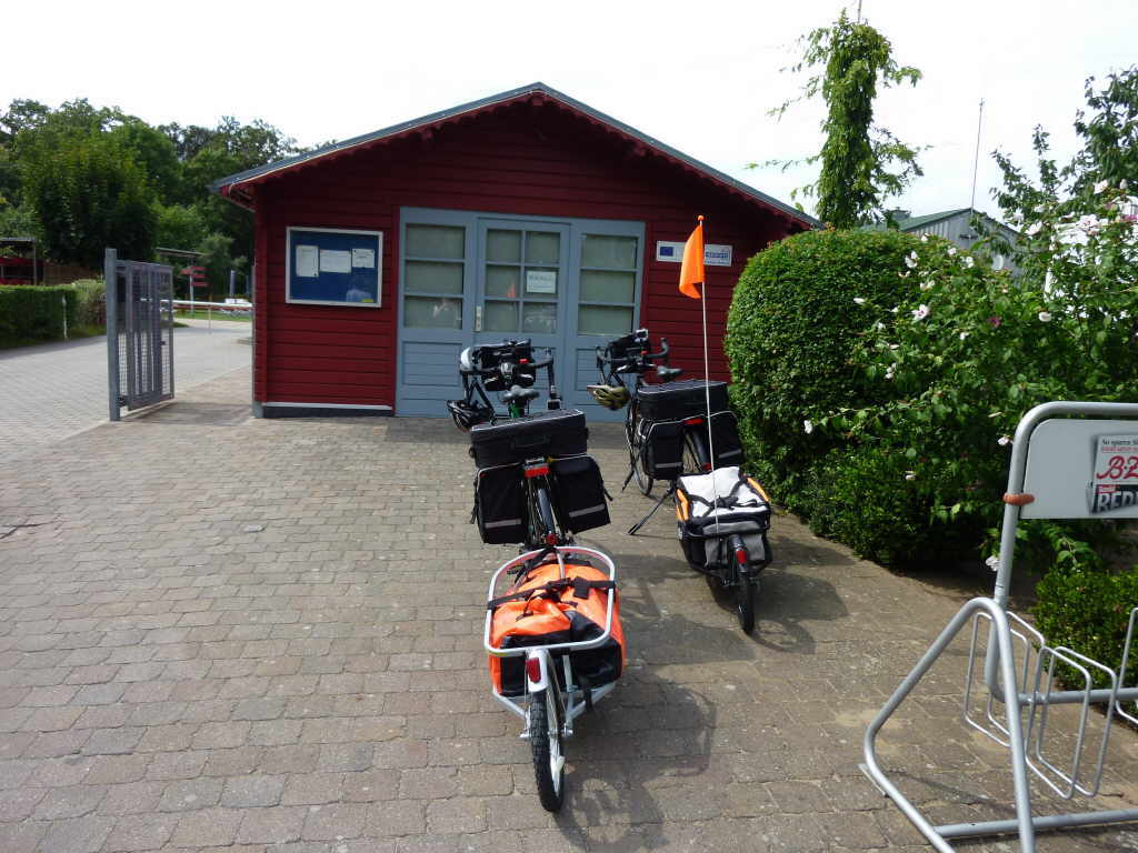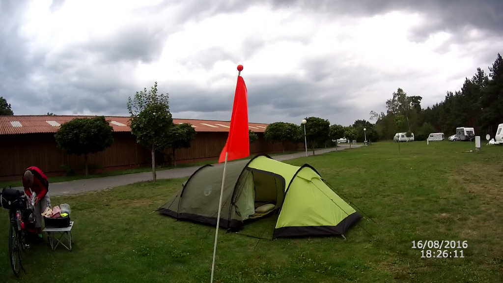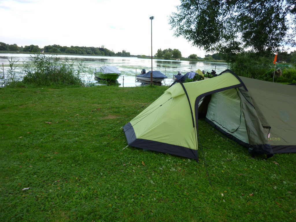 Anlagen. Dann bauen wir zum ersten Mal in diesem Urlaub unser Zelt auf. Geht wie geschmiert. Wir haben zum vorigen Jahr nichts verlernt und arbeiten gut Hand in Hand.