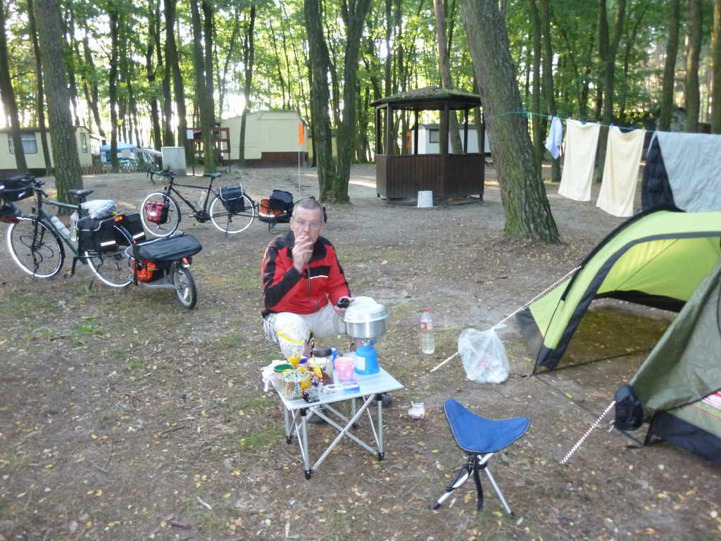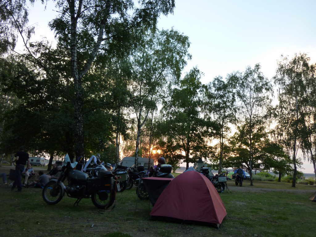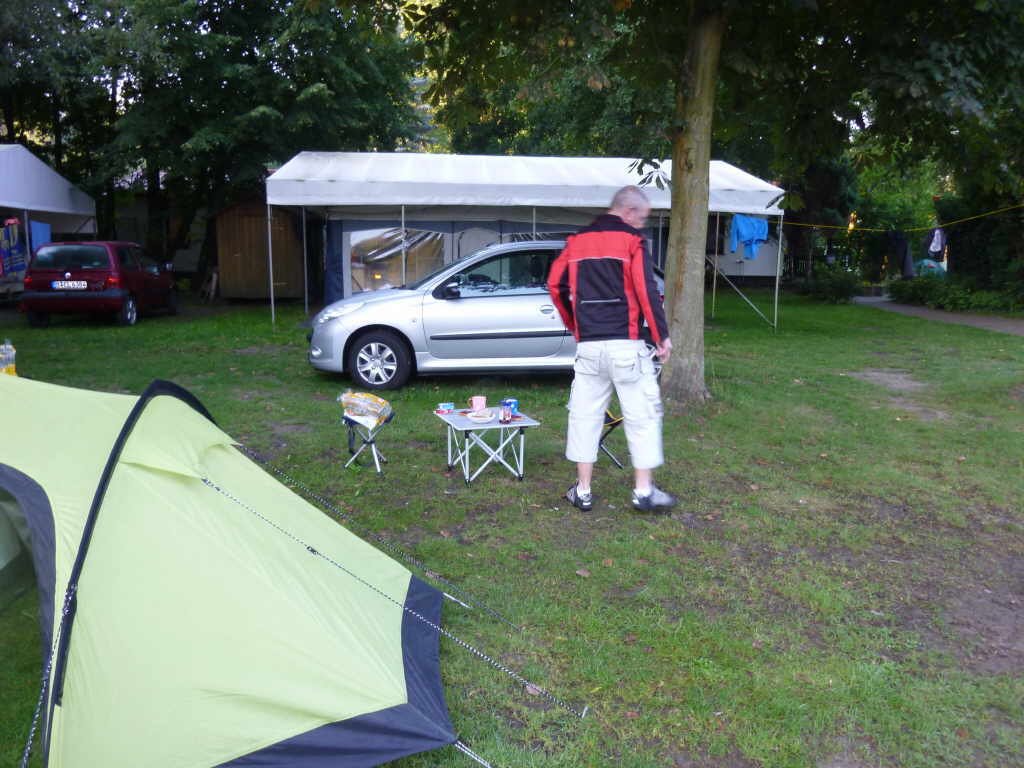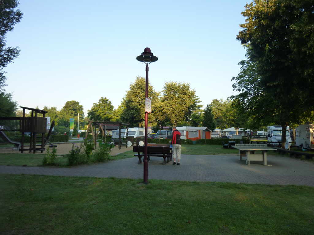 oder ob wir in die Platzgaststätte gehen. Eine Weile sitzen wir noch am Zelt und gehen dann essen. Das Angebot im Lokal kann man anbieten. Es schmeckt und ist preiswert. Wir dehnen das