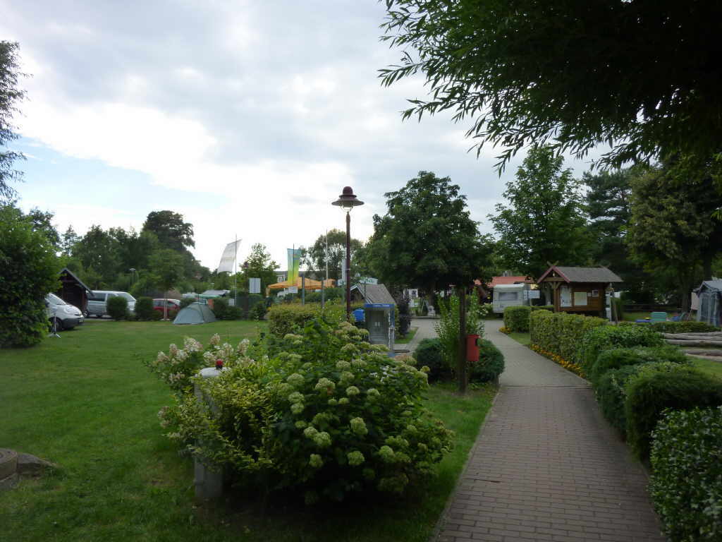 viele Abgase verpesten die Luft. Nachdem wir die Brücke über die Havel überquert haben, wird es wieder ruhiger. Wir erreichen den Campingplatz Sanssouci. Da wir vom Südende auf den Platz