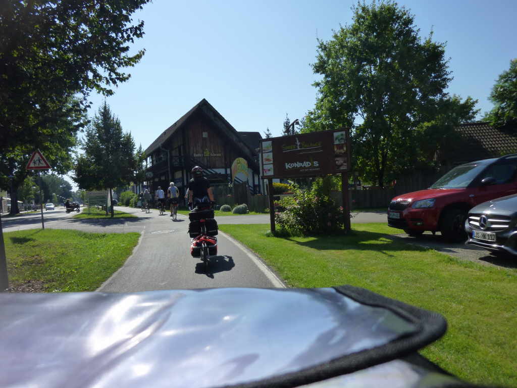 uns fast der Schlag. Nach der Ruhe zwischen den Teichen, ist ganz plötzlich ein unglaublich heftiger Verkehr. Unwahrscheinlich viele Lkw und auch sehr viele Urlauber. Entweder zu Fuß oder