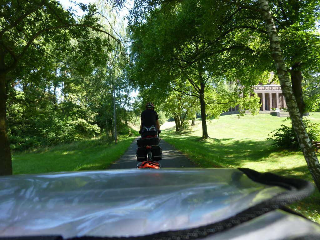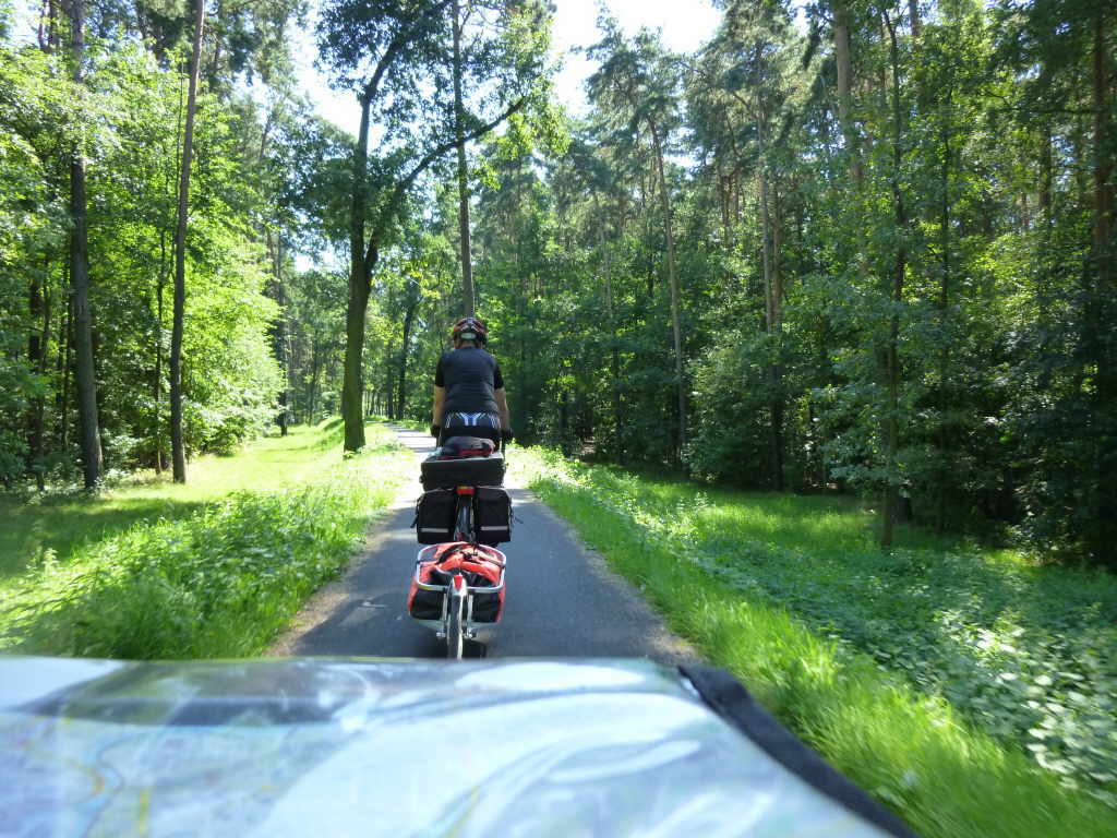 Auch hier ist der durch den Wald führende Radweg nicht in besonders gutem Zustand. Die Bäume mit ihren Wurzeln zerstören die Asphaltschicht. Wir sind ja gespannt ob hier