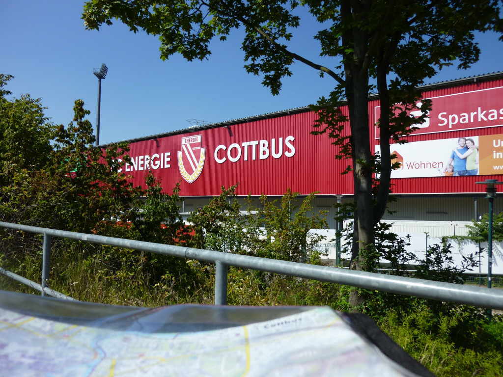 richtigen Weg. Am Stadion von Energie Cottbus pausieren wir.