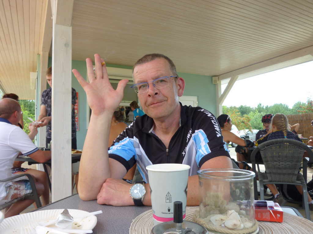 kommen. Nach 14 km machen wir an einem kleinen Imbiss das zweite Frühstück.